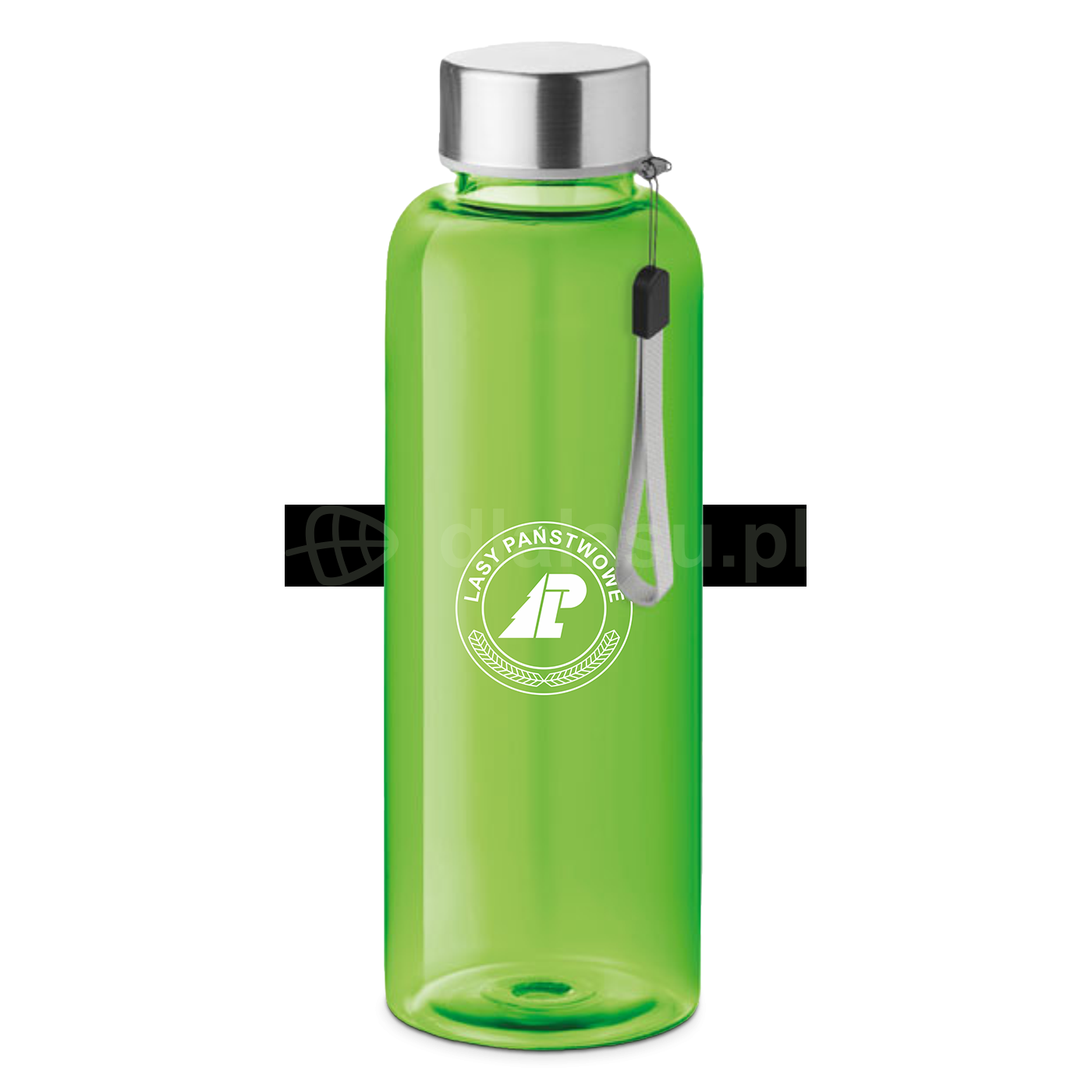 Lekka butelka 500 ml z tritanu, z nadrukiem w 1 kolorze i paskiem na nadgarstek. Możliwość personalizacji logo, świetna jako prezent lub gadżet.