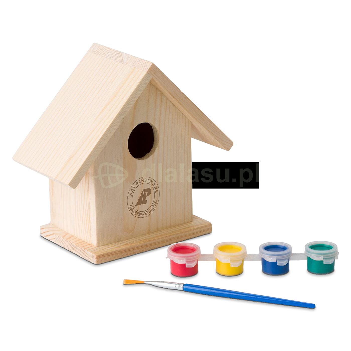 - Zestaw: Domek, zestaw farbek i pędzelek w komplecie.