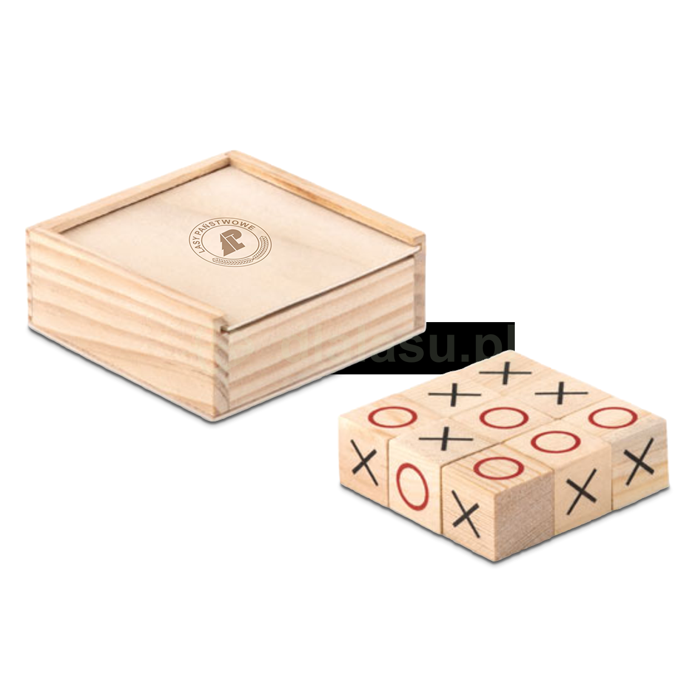 Drewniana gra w kółko i krzyżyk w eleganckim pudełku z personalizowanym grawerem. Stylowy i uniwersalny gadżet reklamowy.