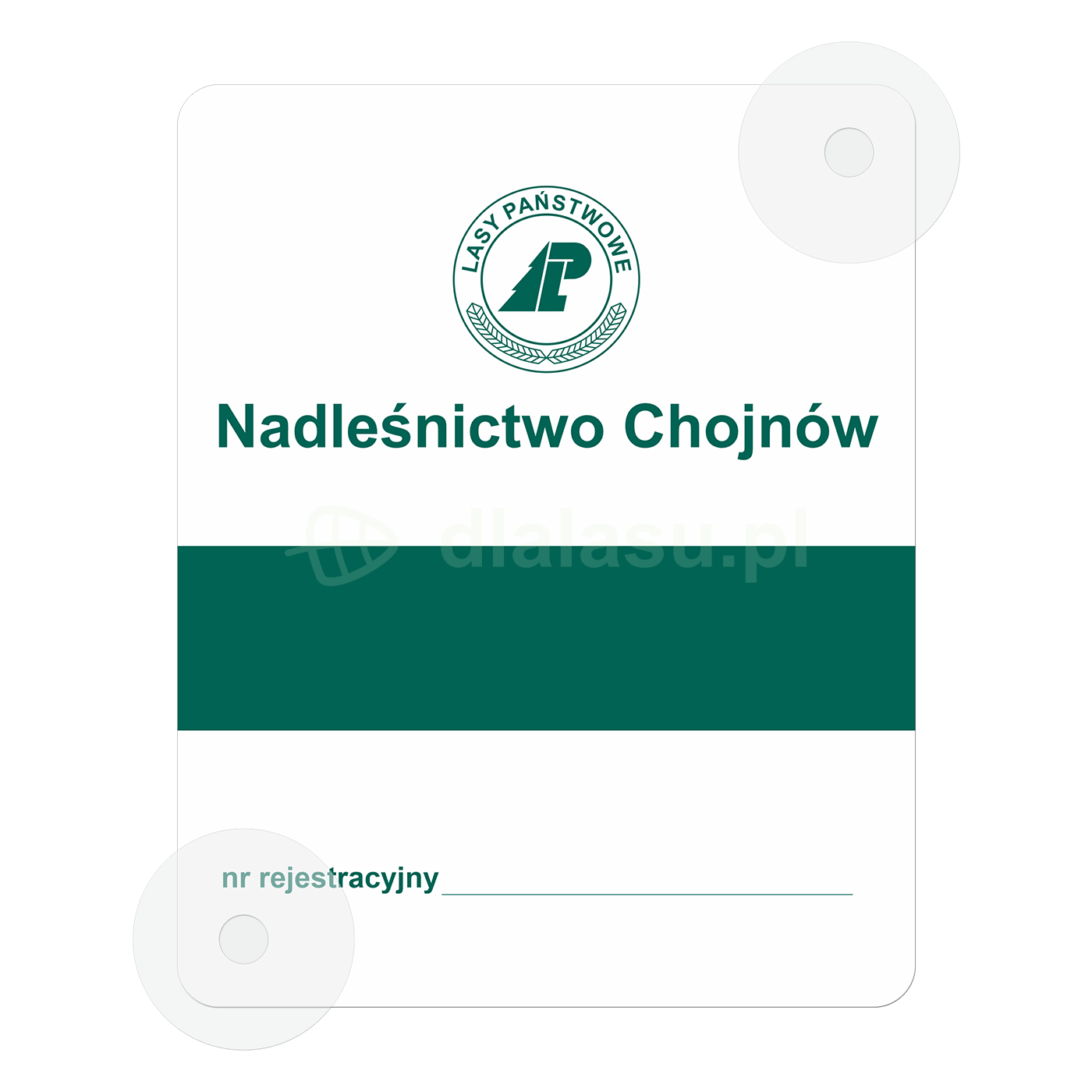 Profesjonalny identyfikator na szybę pojazdu służbowego, zgodny z Księgą Identyfikacji Wizualnej Lasów Państwowych. Montowany od wewnątrz za pomocą dwóch przyssawek. Trwały, czytelny i estetyczny – idealny dla pracowników terenowych LP.