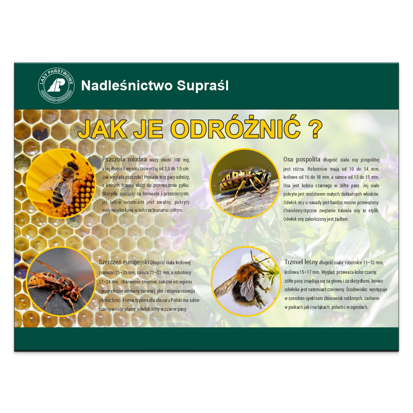 Tablica Edukacyjna "Pszczoła, Osa, Trzmiel, Szerszeń"