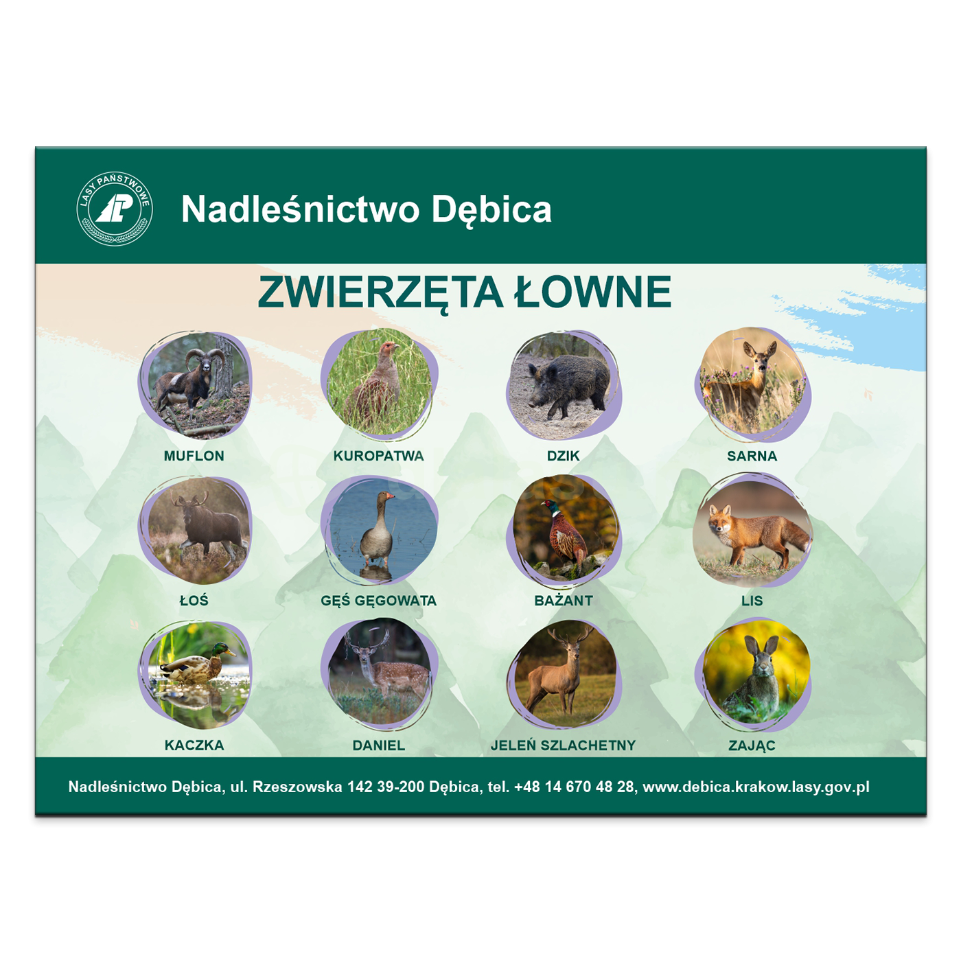 Tablica edukacyjna "Zwierzęta łowne"