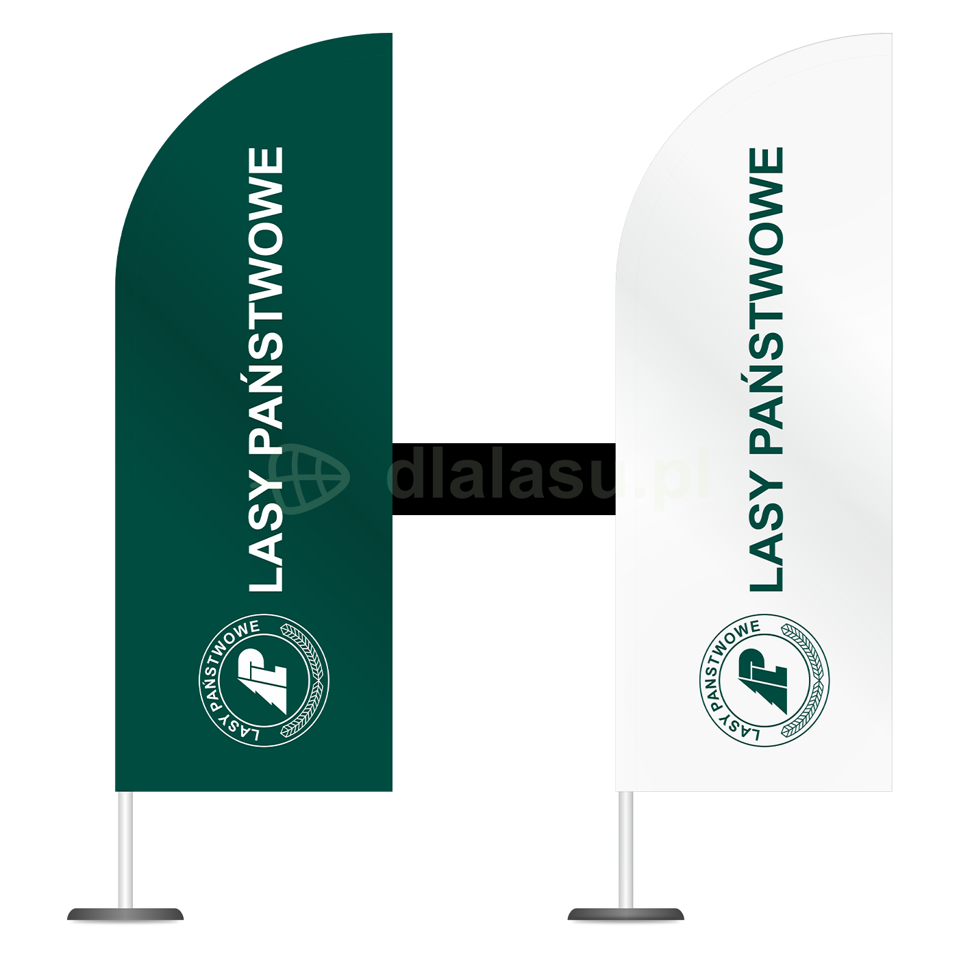 Flaga na maszcie o wysokości 330cm, wymiar flagi 250x90cm, kształt standardowy, z podstawą 35cm.