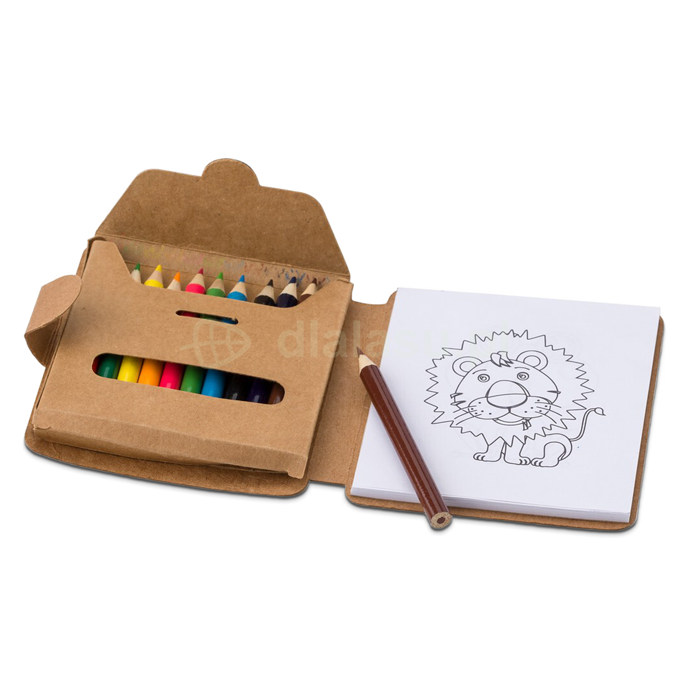 - Zestaw: Notes i zestaw kredek w kartonowym opakowaniu.