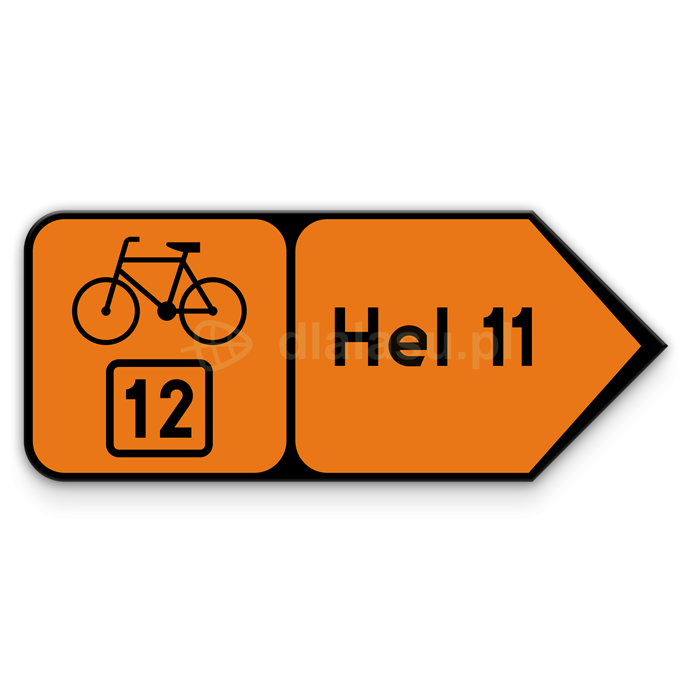 Znak R-4d Drogowskaz szlaku rowerowego w kształcie strzały podający odległość